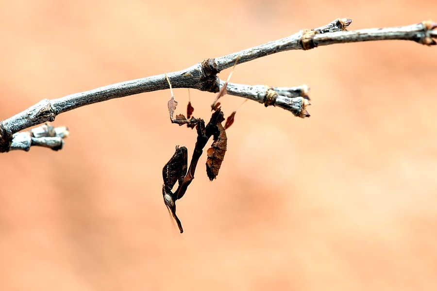 The female praying mantises lay their eggs in the fall and cover them with a foamlike compound that they excrete from their bodies. This keeps their eggs warm during the winter so that they can hatch in the spring.